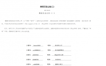 202108-30维权打击公告(二) k1体育信息技术有限公司(以下简称“我司”)经株式会社传奇IP 、RENAISSANCE INVESTMENT MANA...